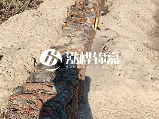 - 落葉松 :東北寒地松木密度高(氣干密度 0.6-0.7g/cm³),天然耐腐性強(qiáng),適合長(zhǎng)期浸水的河道核心區(qū)。某長(zhǎng)江支流護(hù)坡工程使用落葉松木樁,10 年浸泡后樁體損耗率不足 5%。
